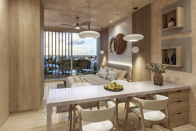 Incredible investment opportunity in Playa del Carmen, Quintana Roo. This beautiful pre-sale apartment with delivery date in March 2026 offers a wide variety of comforts and luxuries for its residents. With 33 m2 of construction, this property has a spacious bedroom, a full bathroom, an equipped kitchen, air conditioning, a balcony with panoramic views, luxury finishes and 24-hour private security.