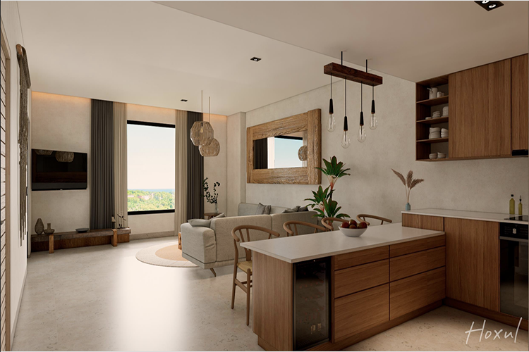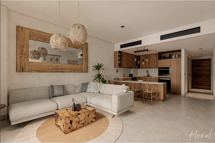 The residence elevates daily living with a range of premium amenities: rooftop infinity pool with ocean views, gym, business center, artificial cenote, multiple pools, jacuzzi, grill area, fire pit, and serene lounge spaces. Residents enjoy direct golf cart access to the beach, 24/7 security, panoramic elevators, and a dedicated mobile app for seamless service.