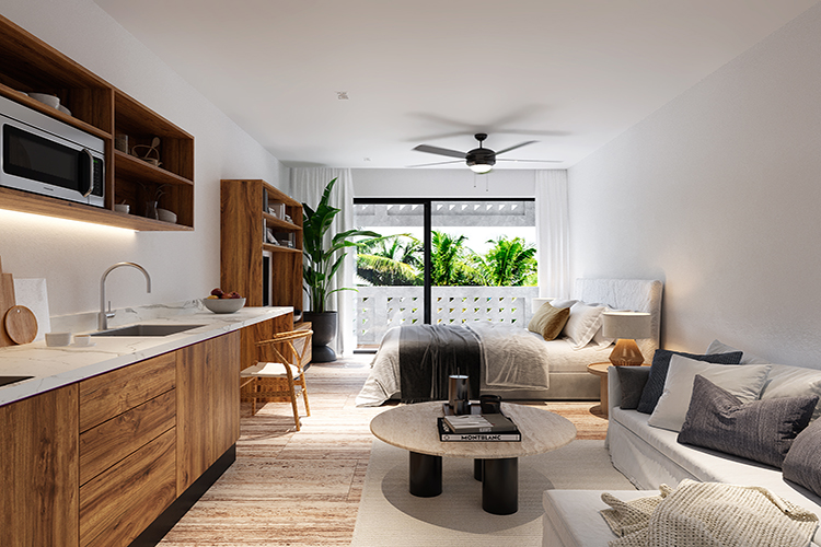 A 45 m² apartment located within Maresol, an exclusive boutique residence that offers a peaceful sanctuary in the vibrant heart of Playa del Carmen just steps from the beach and the iconic 5th Avenue where the energy of the city blends seamlessly with the calm of a thoughtfully designed living space creating the perfect balance between coastal serenity and urban excitement